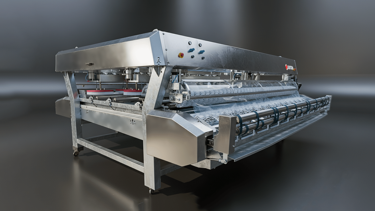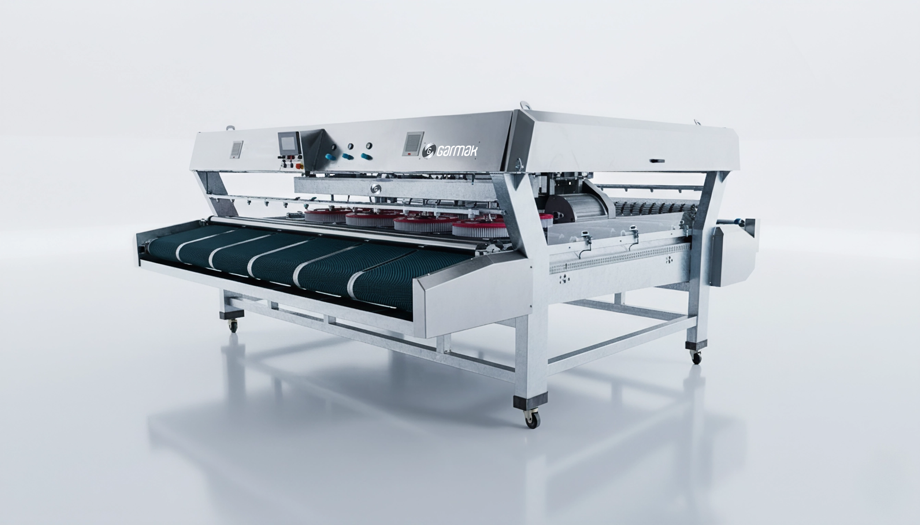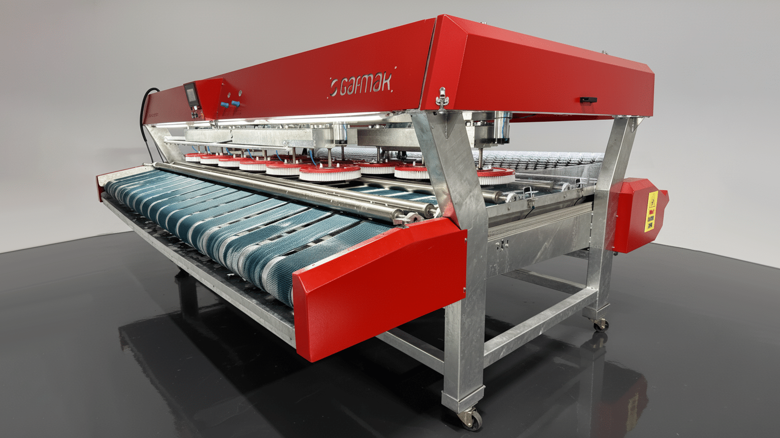 GIGA Series Fully Automatic Carpet Washing Machines are high-capacity, PLC-controlled conveyor-type washing systems developed for professional carpet cleaning plants. With belt widths from 250 to 420 cm, 8–18 disc brush configurations, upper–lower roller brush system, water-saving flat spray nozzle technology and advanced vacuum/roll-winding modules, they deliver maximum hygiene with minimum water and chemical consumption.