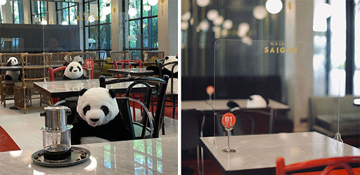 Her şeye rağmen tek kişilik masalara eşlik eden pandalar çok sevimli.