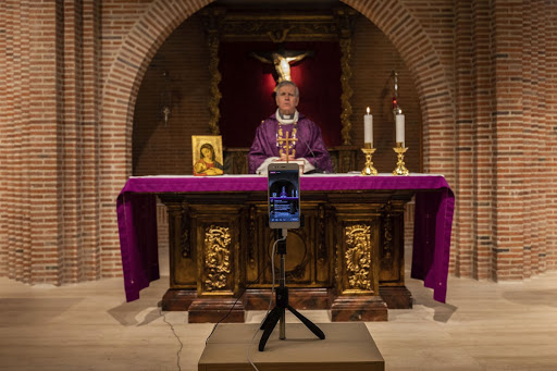 Kilisede de sosyal mesafe gerek. Bunun için kullanılan bantlar.