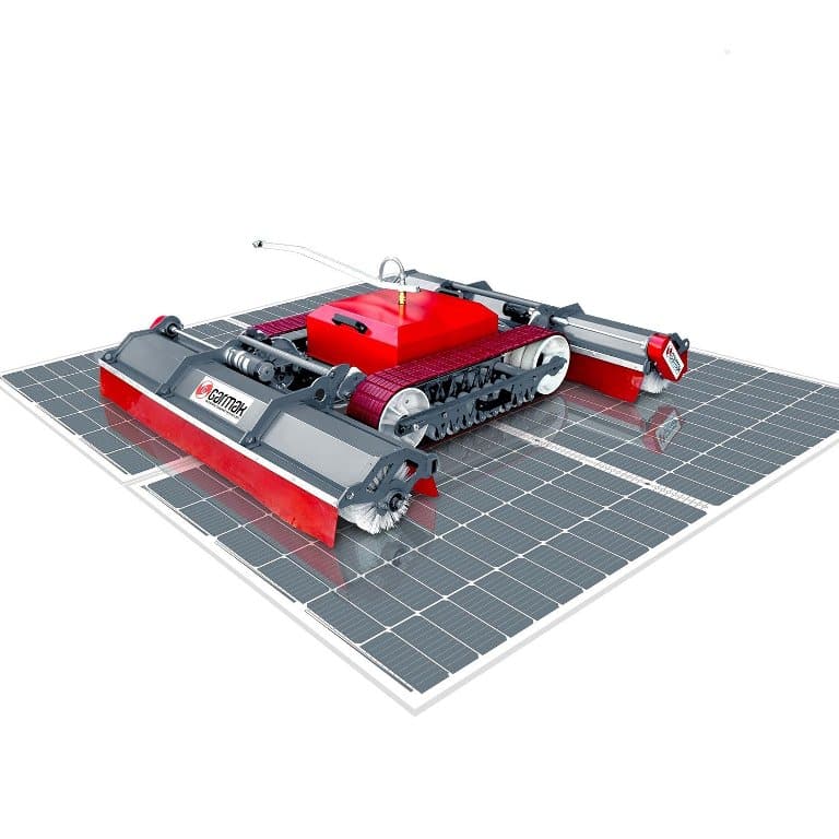 - 120 cm genişliğindeki katlanır fırçaları ve 30 metre/dakika hız kapasitesiyle güneş panellerinde hızlı ve etkili temizlik sağlar.